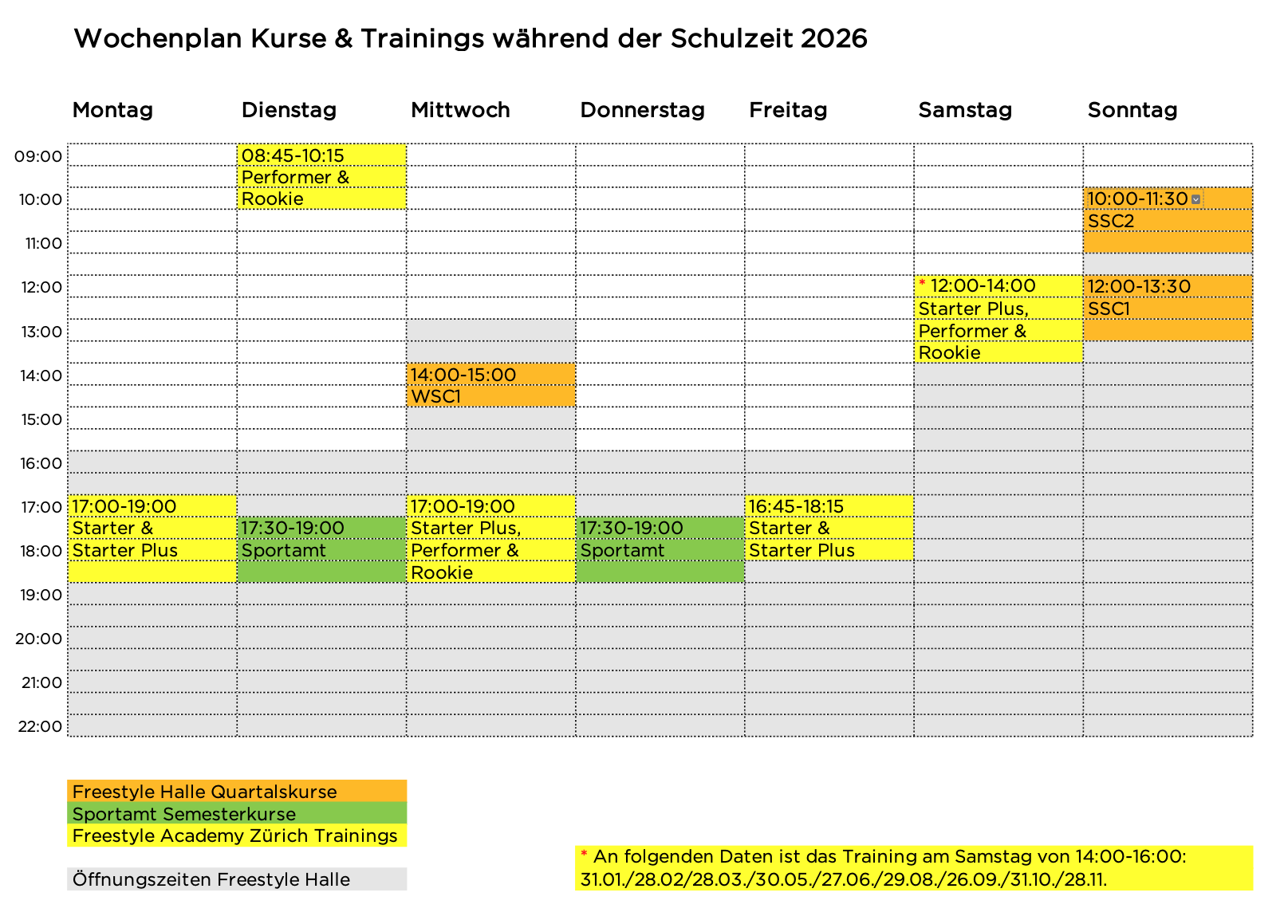Wochenplan Kurse und Trainings während der schulzeit