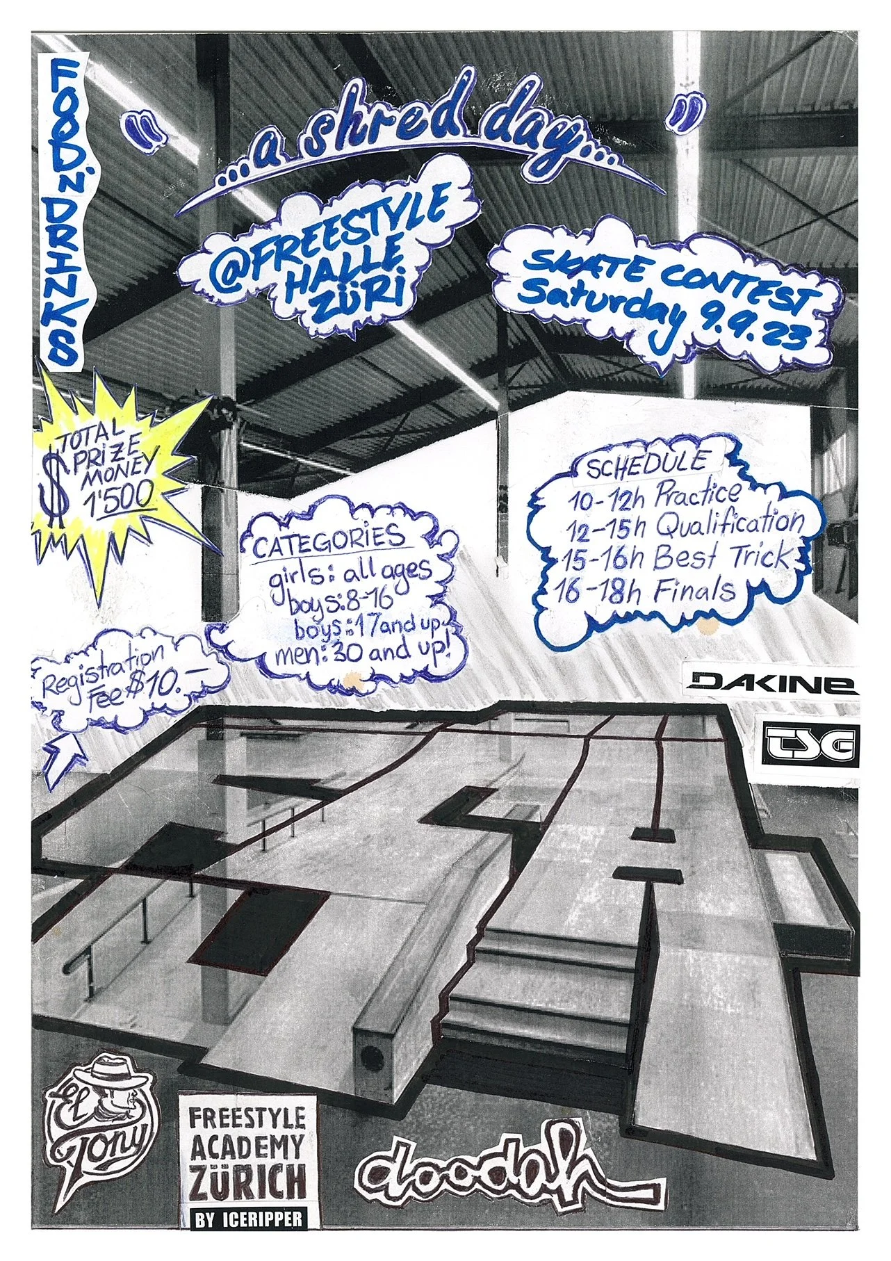 09. September 2023 - Skatecontest "a shred day" August 31, 2023FSHComment Nebst Imbiss und Barbetrieb werden lokale Labels ihre Ware anbieten. Wir freuen uns auf zahlreichen Besuch und Teilnehmende.