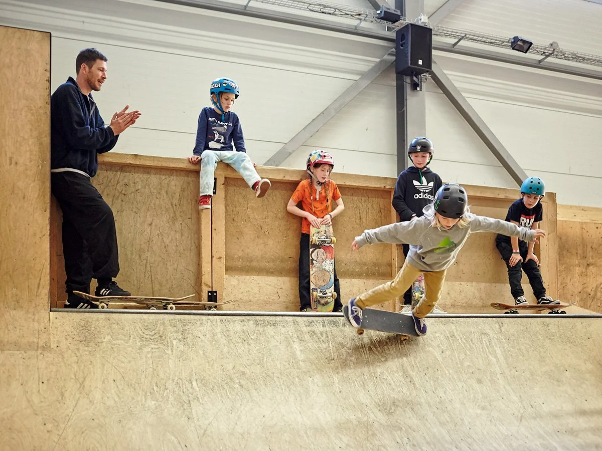 Für Anfänger_innen und leicht Fortgeschrittene zwischen 6 und 16 Jahren, unterteilt in drei Alterskategorien. Wöchentlich eine Lektion über 60 oder 90 Minuten. Max. 10 Kids pro Kurs betreut durch einen Skatecoach.